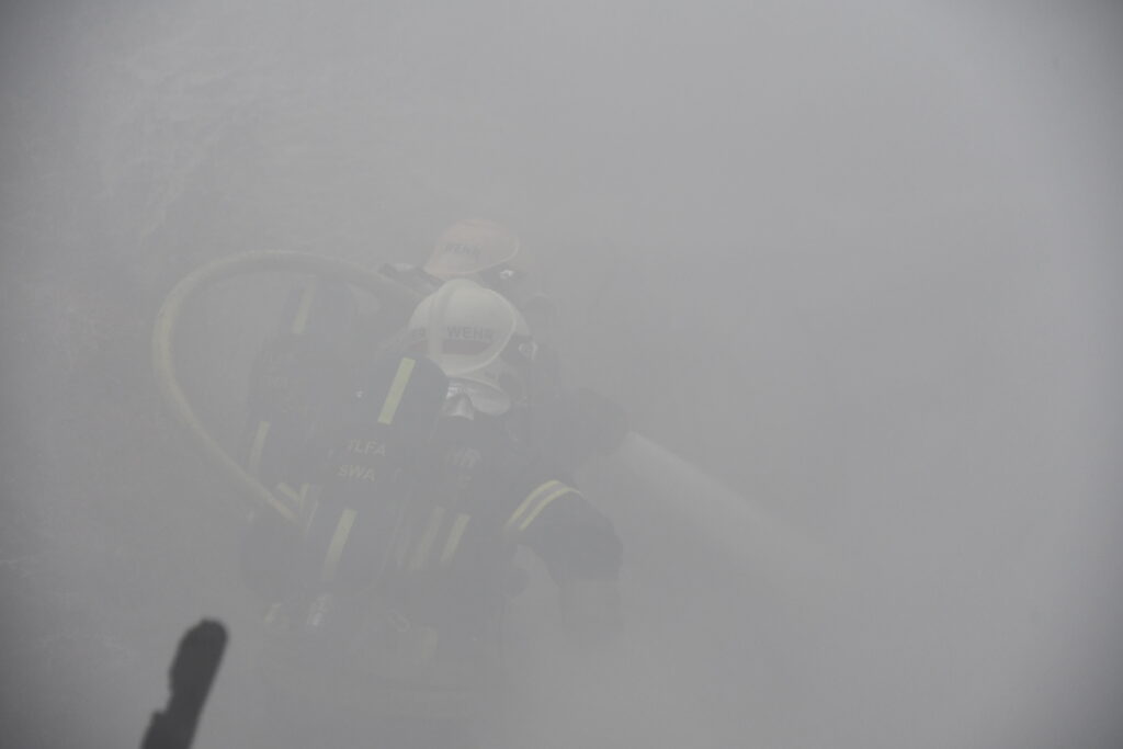 Kurz nach dem Eintreffen der ersten Feuerkräfte wurde sofort mit der Brandbekämpfung mit C-Rohren im Außenangriff begonnen. Parallel dazu wurden Zubringerleitungen zur Abdeckung des Löschwasserbedarfes aufgebaut. Die weitere Brandbekämpfung erfolgte mit mehreren C-Rohren im Innenangriff des Gebäudes und weiterhin im Außenangriff.