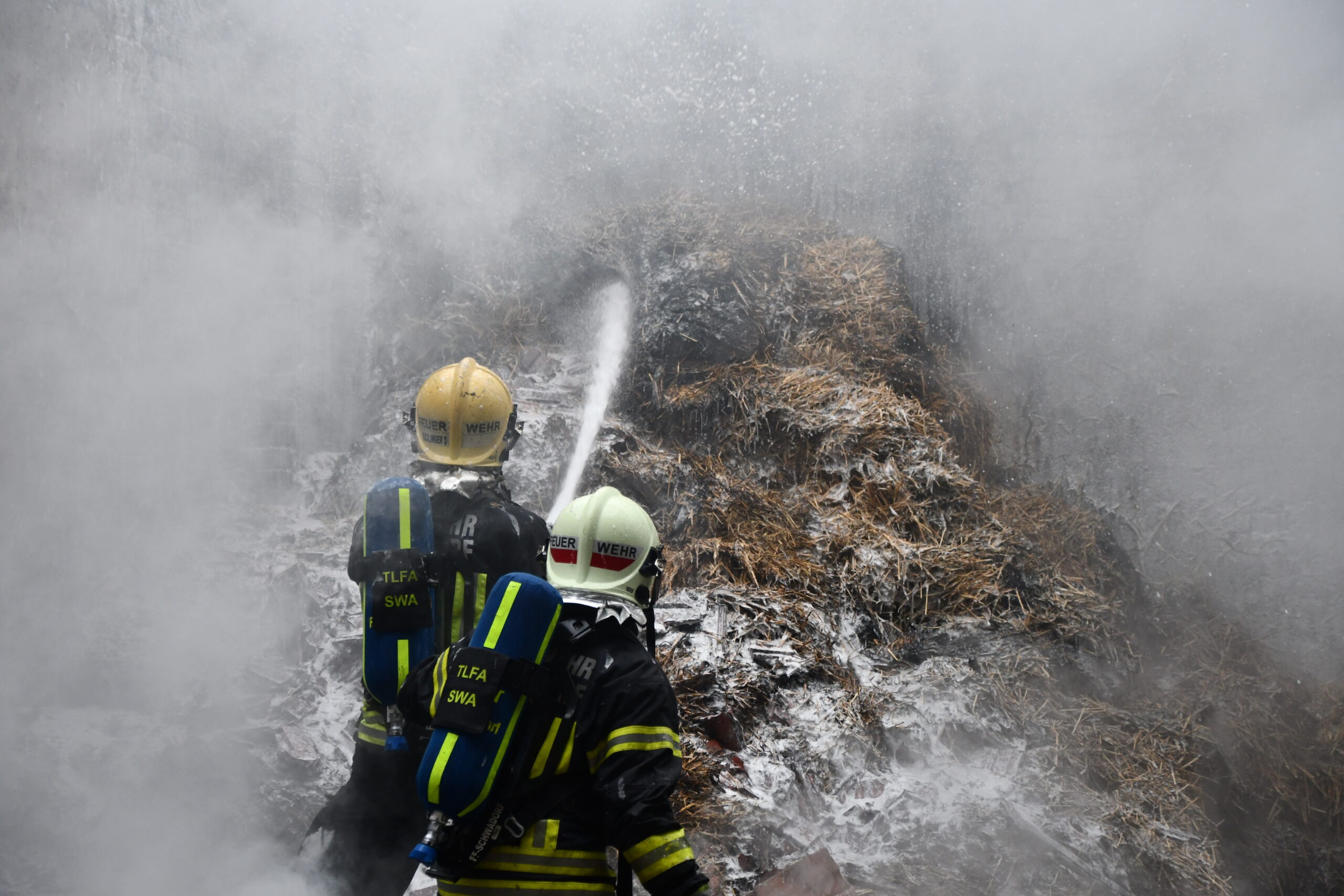 Die getroffenen Maßnahmen führten rasch zum Löscherfolg und die Brandlast konnte gebrochen werden. Für einen höheren Löscheffekt erfolgte die Zugabe von Netzmittel beim Löschen der im Gebäude befindlichen Strohballen. Um die letzten Brandherde zu erreichen, mussten landwirtschaftliche Maschinen aus dem Gebäude geschleppt werden.